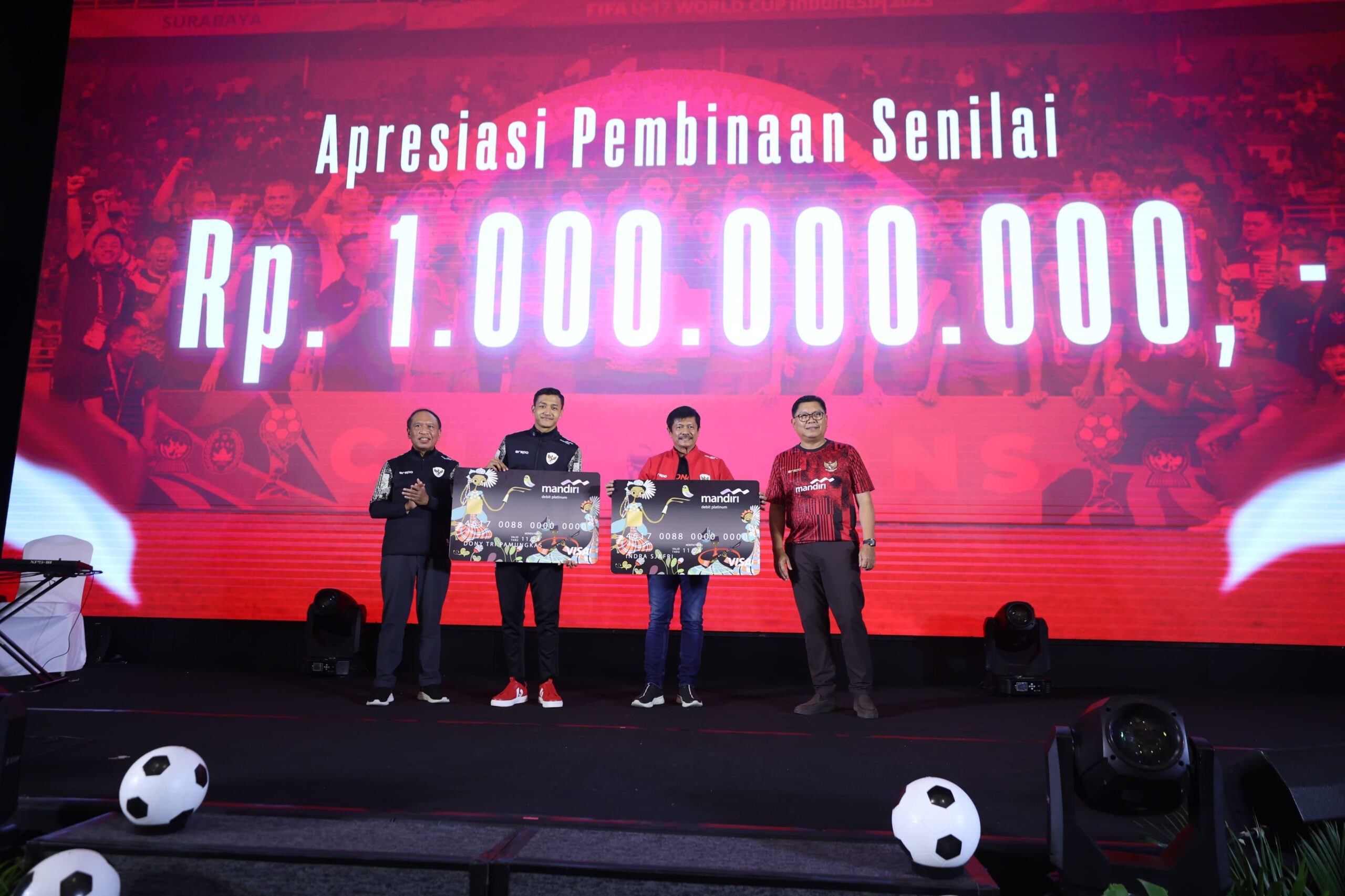 “Apresiasi untuk memotivasi kami dan menjadi tanda kami tidak sendiri karena didukung. Terimakasih kepada Bank Mandiri atas pemberian apareasiasi kepada kami,” kata Indra Sjafri.