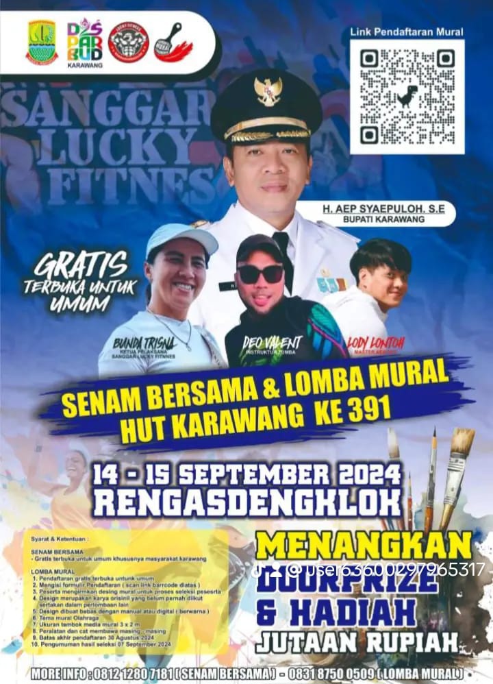 TITIKTEMU – Dalam rangka memeriahkan HUT Karawang yang ke-391 tahun, salah seorang tokoh masyarakat Rengasdengklok Dedi Hunter bakal menggelar kegiatan senam sehat dan lomba mural.