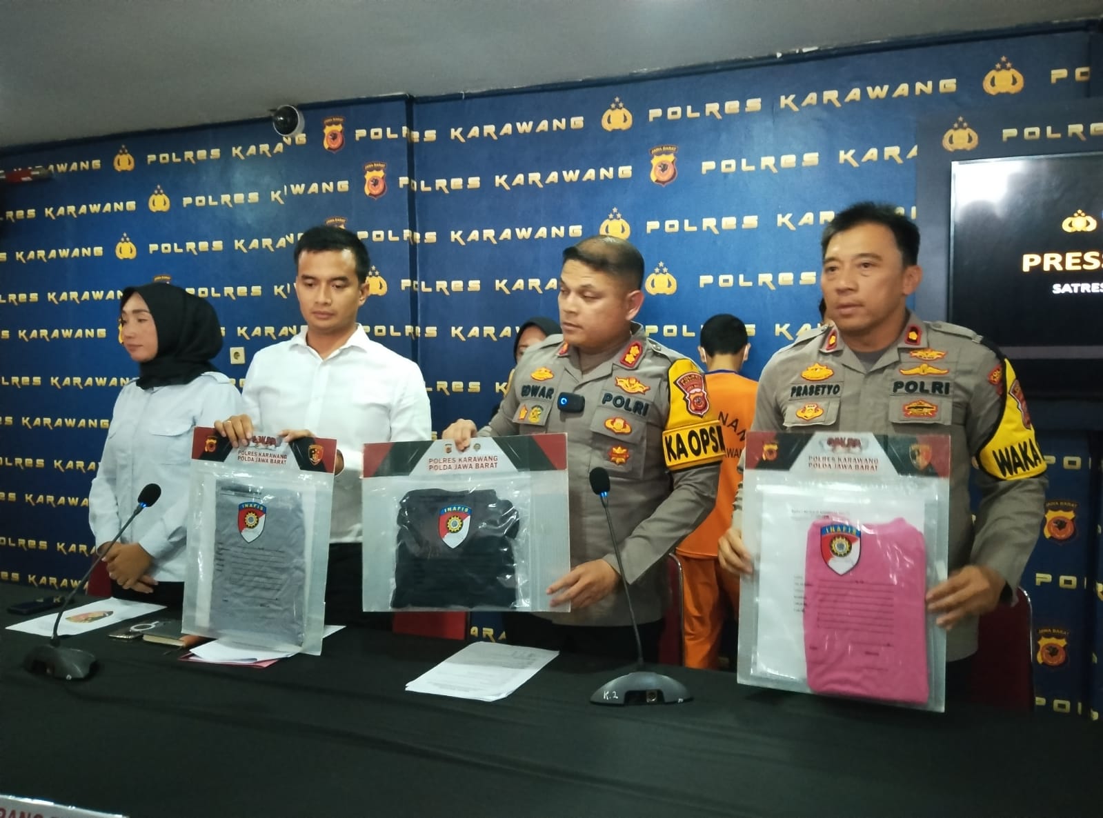 “Dalam kasus ini beberapa barang bukti yang berhasil diamankan adalah pakaian yang digunakan para korban, pakaian yang digunakan pada saat perbuatan yang dilakukan oleh pelaku,”