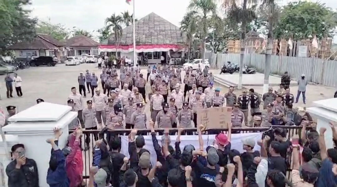 Ket foto : Ilustrasi net dan aksi demonstrasi di depan kantor Kecamatan Jayakerta, Rabu (11/9/2024).