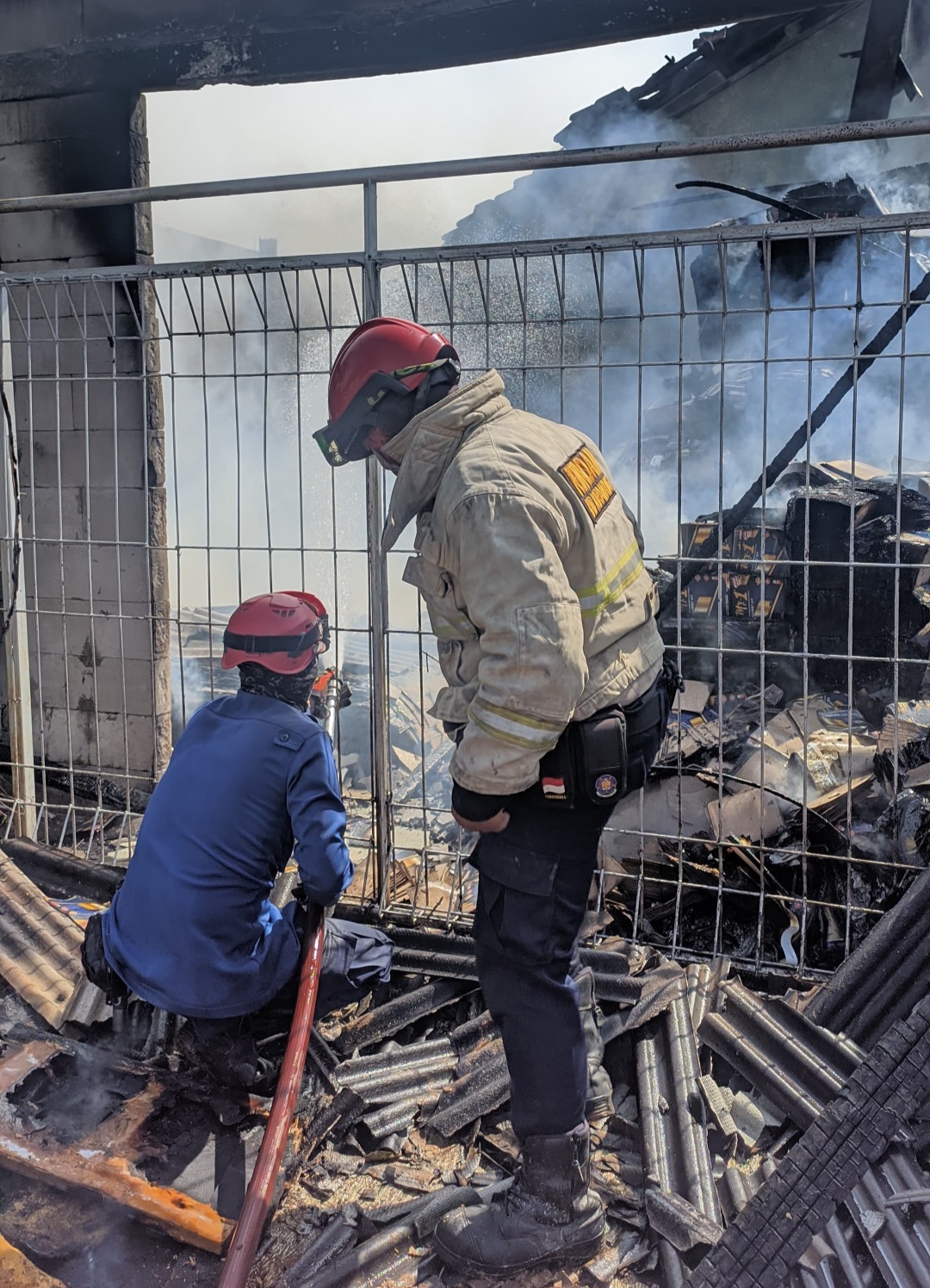 Proses pemadaman dan pembasahan masih berlangsung hingga saat ini. Petugas PMK terus berjibaku untuk memadamkan api yang membakar tumpukan kertas di gudang.