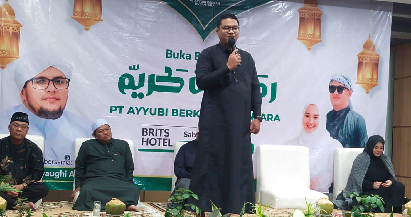TITIKTEMU  – Menghadirkan seorang Mubaligh ternama di Indonesia yakni Habib Syaughi Al-Habsy, seluruh keluarga besar PT Ayyubi Berkah Nusantara menggelar buka puasa bersama puluhan anak yatim piatu yang digelar disalah satu Ball Room Hotel Brits Karawang pada Sabtu (15/3/2025) sore.
