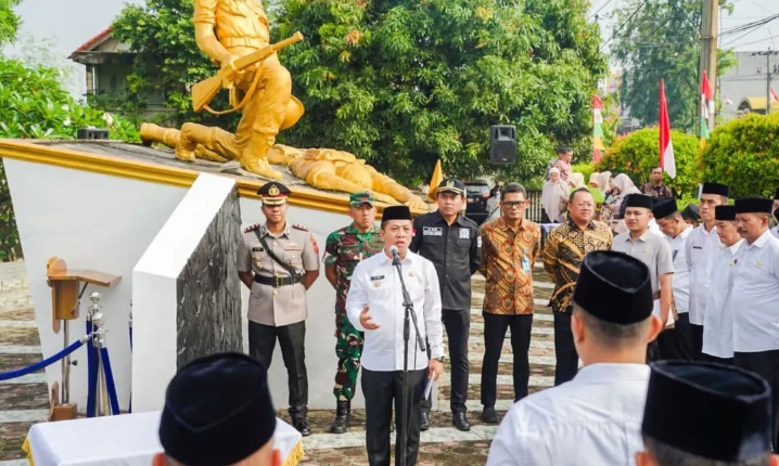 TITIKTEMU – Bupati Karawang H. Aep Syaepuloh melantik dan mengambil Sumpah Jabatan Pimpinan Tinggi Pratama dan Jabatan Fungsional Tertentu di Lingkungan Pemerintah Kabupaten Karawang Tahun 2025 yang dilaksanakan di Tugu Surotokunto, Karawang Timur pada Kamis (21/8/25).