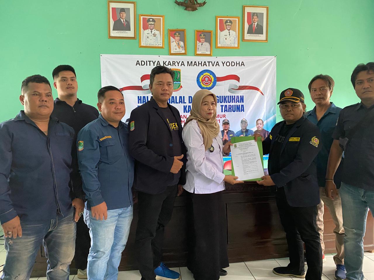 TITIKTEMU – Kegiatan halal bihalal yang dirangkaikan dengan pengukuhan pengurus Karang Taruna Adiarsa Timur berlangsung hangat dan penuh kebersamaan.